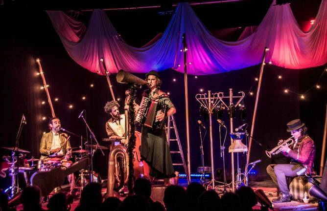 Un concierto original en el que la ensoñadora música de 'Proyecto Voltaire' arropa la interpretación de textos poéticos sobre los seres y objetos que habitan el vientre de la carpa, desarrollando el imaginario del circo de una época anterior, para destacar su esencia siempre emocionante. El circo como ente nómada, trashumante, que no puede parar de viajar y renacer tanto en el espacio como en el tiempo, uniendo tradición y vanguardia, memoria e imaginación.