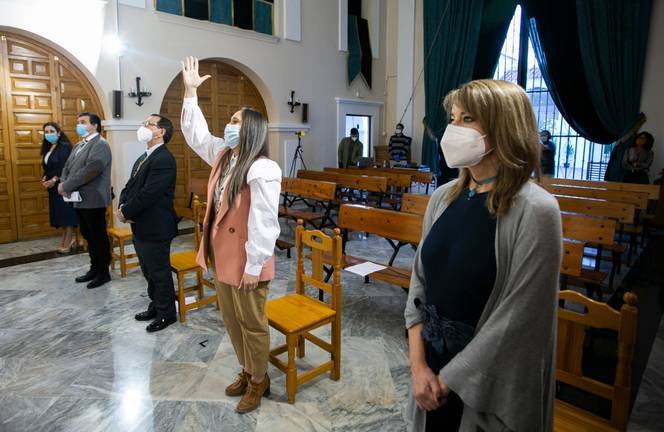 El acto se desarrolló de una forma sencilla, a puerta cerrada siguiendo las recomendaciones de las autoridades en esta fase de desescalada en la crisis sanitaria, con la única presencia de Antonio Sánchez de Piña y Desiree Márquez, presidente y hermana mayor respectivamente de la Hermandad del Rocío; Gabriel Cruz, alcalde de Huelva; y las representantes de las entidades colaboradoras con la edición del cartel: Teresa Millán, responsable en Huelva de la Fundación Cepsa, que nuevamente y tras muchos años vuelve a demostrar su compromiso social con la Hermandad, participando no sólo en la edición de cartels ino también en las obras sociales que la corporación realiza a lo largo del año; y Pilar Miranda, presidenta del Puerto de Huelva, que se suma este año a colaborar con la Hermandad para la hechura de dicha obra.