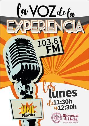 El otro proyecto, de la mano de UniRadio, y que también busca la participación activa del alumnado del Aula de la Experiencia se denomina ‘La voz de la Experiencia’, y se emitirá a través de las ondas hertzianas todos los lunes en la emisora de la Universidad de Huelva (dial 103.6 FM), en un espacio desde las 11.30 a las 12.30 horas, en formato ‘magazine’. Se pretende que la radio se convierta en plataforma de expresión cultural, de la actualidad de la Universidad de Huelva, seguimiento de contenidos académicos de relevancia relacionado con el programa formativo del curso en el Aula de la Experiencia, con cabida para el debate en torno a temas de actualidad, a través de un medio ágil de fácil difusión.