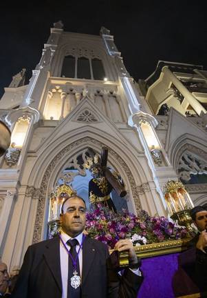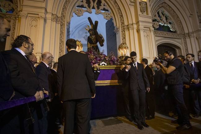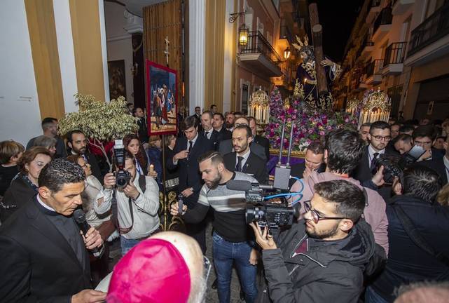 El acto ha recorrido varias calles del centro desde la Parroquia de La Milagrosa, donde el Señor de Las Penas en sus Tres Caídas fue trasladado el pasado sábado desde su templo del Sagrado Corazón Polvorín con motivo del 75 aniversario de su creación.