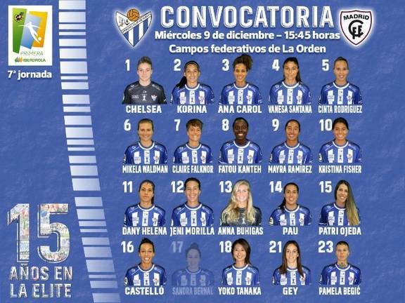El combinado onubense, que persigue su primera victoria de la temporada, sólo lamenta la baja de Sandra Bernal, que trabaja para alcanzar un nivel óptimo de forma tras tantos meses de inactividad por culpa de una lesión de larga duración. Es la única ausencia en una convocatoria con 19 futbolistas.