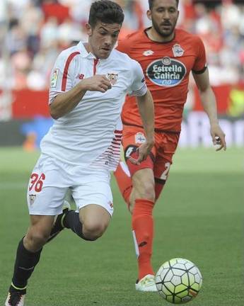 El sueño del onubense Curro Sánchez sigue vigente. El futbolista natural de La Palma del Condado ha ampliado su contrato con el Sevilla FC hasta el 30 de junio de 2019, por lo que continúa aspirando a formar parte de la primera plantilla sevilista en un futuro cercano.