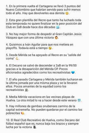 Un hincha del Mérida crea un 'Decanálogo' para motivar al Recre contra el Cartagena