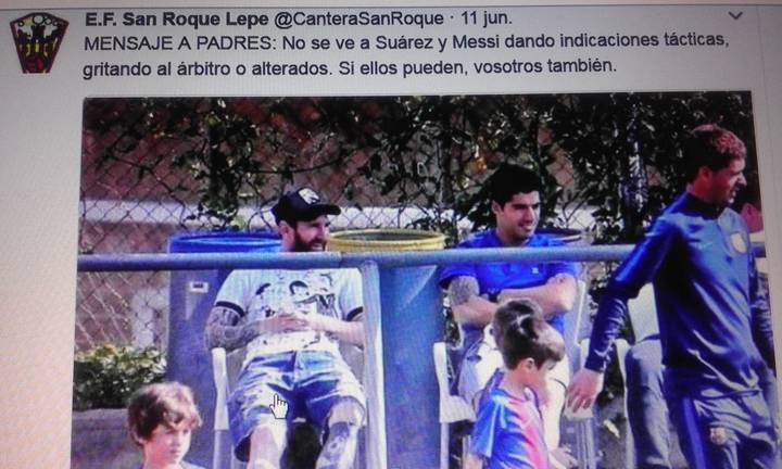 El San Roque usa a Messi y Luis Suárez para mandar un mensaje a los padres de la cantera