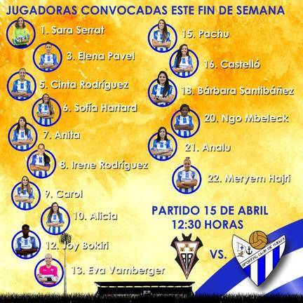Así las cosas, la convocatoria estará formada por las guardametas Sara Serrat y Eva Vamberger, y las jugadoras de campo Elena Pavel, Cinta Rodríguez, Sofía Hartard, Anita, Irene Rodríguez, Carol, Alicia, Patri Ojeda, Castelló, Bárbara Santibáñez, Ngo Mbeleck, Analu, Hajri y Joy Bokiri.