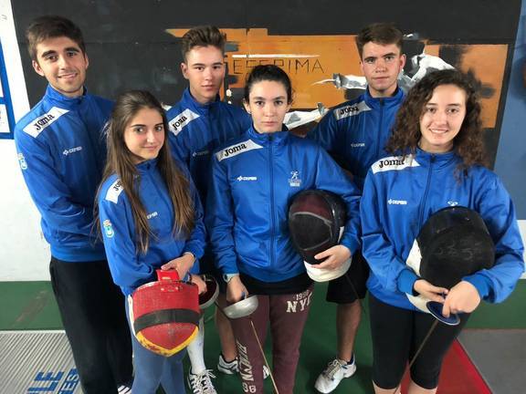 Los tiradores Juan José Vargas, Héctor Albiol y Pablo Cano participan en la modalidad de espada masculina cadete, junto con sus compañeras Arian Díaz y Estanis Albiol en espada femenina de la misma categoría.
