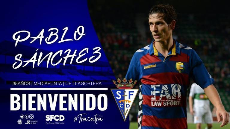 PABLO SÁNCHEZ (Cádiz, 24/01/1983): Veterano mediapunta de 35 años, procede del Llagostera. Formado en la cantera del Cádiz y Sevilla, ha jugado también para Las Palmas, Recreativo de Huelva, Lugo y Adelaide (Australia). Suma 208 partidos y 34 goles en Segunda División y 60 encuentros y 11 dianas en Segunda B.