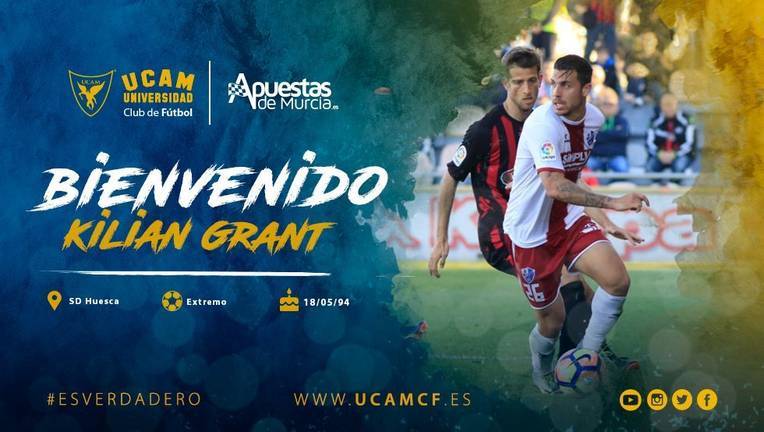 KILIAN GRANT (Figueres, 1994): Extremo de 24 años, que llega al UCAM Murcia tras defender durante dos temporadas la camiseta del Huesca. Su currículo se completa con el Espanyol B, Olot y Zaragoza B. Atesora 54 partidos y 7 goles en Segunda B.