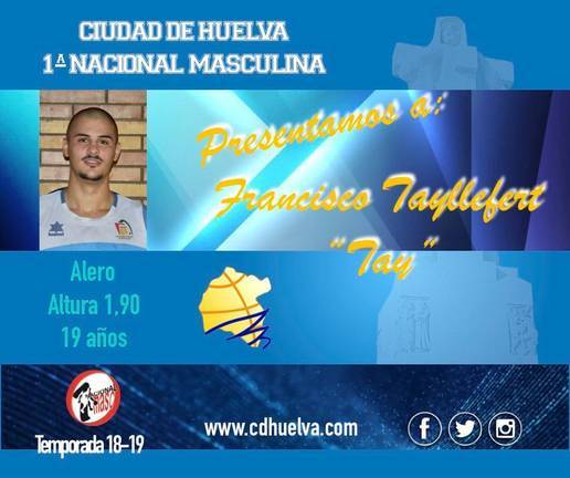 El nuevo proyecto deportivo del Ciudad de Huelva ha echado a rodar con la renovación de Fran Tayllefert, más conocido por 'Tay'. Se trata de un alero de 19 años y 1,90 metros de estatura, que destaca por su velocidad y poderío físico, virtudes que le permiten defender a jugadores más altos.