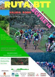 Otra competición que toca a su fin. El próximo domingo se disputará la Ruta BTT Zufre, prueba que servirá para cerrar el Circuito Provincial de BTT Maratón. Una competición que hizo antes parada en Almonte, Villarrasa, Valverde, Cartaya, Santa Ana La Real y Minas de Riotinto, y que decidirá sus campeones en el Parque Natural de la Sierra Aracena y Picos de Aroche.