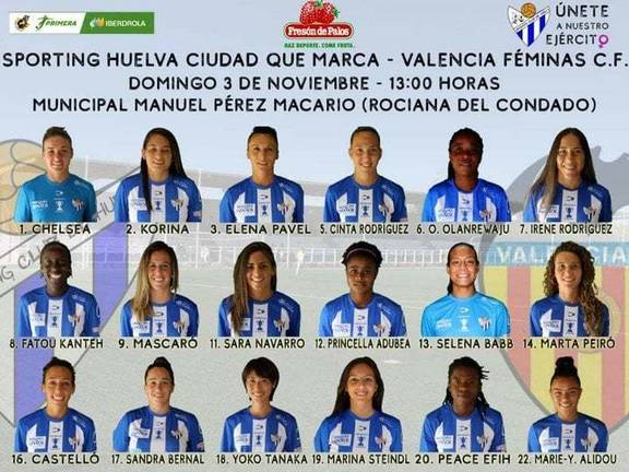 Obligado por la cortedad de su plantilla y las bajas por lesión de Patri Ojeda y Natalia Nogareda, el técnico blanquiazul repite la convocatoria de las últimas jornadas para el choque con las valencianas, que se jugará en el Manuel Macario de Rociana por la coincidencia con el turno local del Recreativo de Huelva.