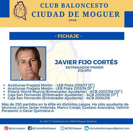 Sus últimas experiencias, ya como primer entrenador, se remontan a las temporadas 2015/16 y 2016/17, en las que dirigió al CB Morón en la LEB Plata. Ahora tiene por delante el reto de sacarle todo el jugo a la plantilla moguereña y pelear de tú a tú con los clubes más poderosos por el salto de categoría.