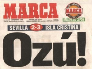 Aquel 10 de septiembre de 1997, el CD Isla Cristina se plantó en el Sánchez Pizjuán con el sueño de remontar la derrota sufrida en el Municipal (1-2). Una misión que parecía imposible cuando Lawarée avanzó a los locales, si bien, antes del descanso los goles de Garrido y Benito permitían a los isleños igualar la eliminatoria.