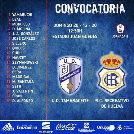 Es la última convocatoria del año. Y también una fuente de noticias. Claudio Barragán ha citado a 19 jugadores, en lugar de los 20 futbolistas habituales, para el partido que mañana domingo (Juan Guedes, 12.30 horas) deben disputar en tierras canarias el Tamaraceite y el Recreativo de Huelva.