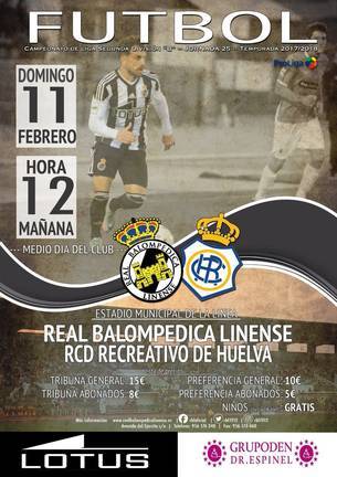 La Junta Directiva de la Real Balompédica Linense ha hecho públicos el cartel y los precios de cara al encuentro del próximo domingo (Municipal de La Línea de La Concepción, 12.00 horas) ante el Recreativo de Huelva.