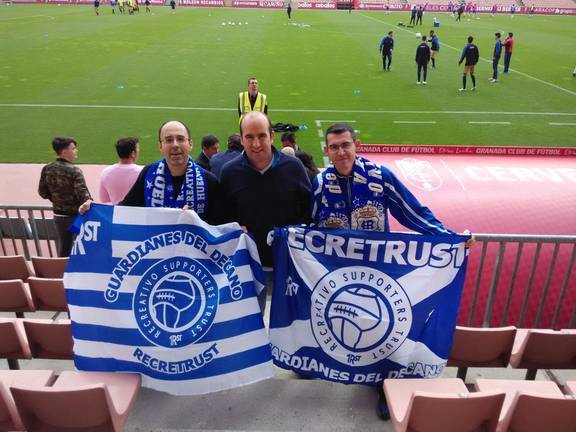 Alrededor de 300 hinchas recreativistas se dieron cita en el Nuevo Los Cármenes para ver el empate del Decano con el Granada B, pero fue suficiente para que fueran mayoría en las gradas. La Peña Charles Adam y el Recreativo Supporters Trust estuvieron entre los representados en el estadio animando a los entrenados por Pavón.