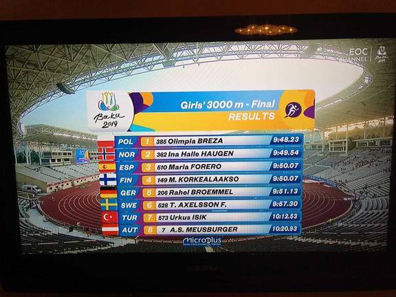 El tiempo de ambas fue de 9:50.07, pero la 'foto finish' determinó que el tercer lugar del podio correspondía a María Forero. A su lado, la polaca Olimpia Breza, ganadora con 9:48.23, y la noruega Ina Halle Haugen, segunda con 9:49.23. Testigos de excepción del nacimiento de una estrella.