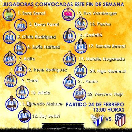 La citación completa la integran las guardametas Sara Serrat y Eva Vamberger; y las futbolistas de campo Elena Pavel, Cinta Rodríguez, Sofía Hartard, Anita, Irene Rodríguez, Carol, Alicia Redondo, Patri Ojeda, Castelló, Sandra Bernal, Natalia Nogareda, Ngo Mbeleck, Analu, Rutendo Makore, Meryem Hajri y Joy Bokiri.