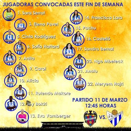 Y un partido clave si las chicas de Antonio Toledo quieren seguir opositando a la Copa de la Reina, pues el Levante ocupa el último vagón copero. Tras cuatro derrotas seguidas, al combinado onubense no le vale otra alternativa que la victoria. Siguen de baja las lesionadas de larga duración Bárbara Santibáñez y Sandra García, y se recupera a Panchi Lara.