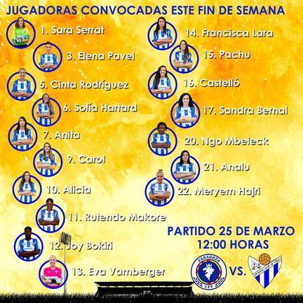 En la convocatoria, destaca la vuelta de Patri Ojeda y Sandra Bernal, tras cumplir ambas un partido de sanción. En otro orden de cosas, el choque será el último que dispute con el Cajasol Sporting la chilena Francisca Lara, que ha sido reclamada por su selección para jugar la Copa América.
