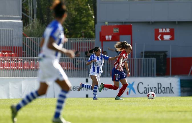 La sexta victoria en seis jornadas de las colchoneras comenzó a escribirse pasado el primer cuarto de hora, cuando Sonia Bermúdez aprovechaba un gran balón de Ludmila para abrir el marcador. No se movería el resultado durante la primera mitad, pese a los esfuerzos de las chicas de Antonio Toledo por lograr la igualada.