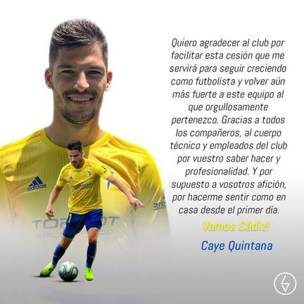 Caye Quintana seguirá jugando en la Segunda División, pero ha cambiado de equipo en este mercado de fichajes de invierno. Entre las muchas ofertas que había recibido, el último gran goleador del Recreativo de Huelva se ha decantado por el Fuenlabrada, conjunto en el que actuará en calidad de cedido por el Cádiz hasta el 30 de junio.