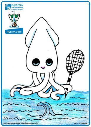 El Campeonato de Europa Absoluto de Bádminton Huelva 2018 ya tiene mascota. Se trata de 'Chokyto', un diseño de un choco de ojos azules ataviado con una raqueta de bádminton, que ha sido elaborado por una alumna del Instituto de Educación Secundaria 'La Orden'.