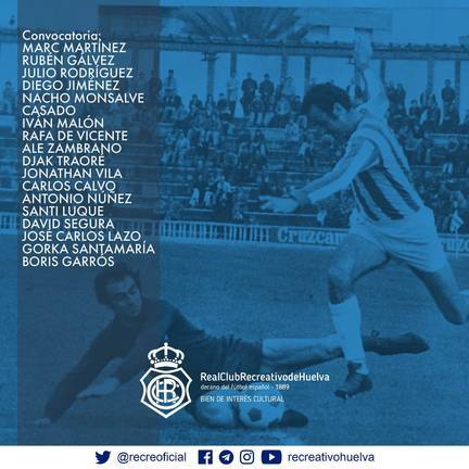 La citación la integran los porteros Marc Martínez y Rubén Gálvez; los defensas Julio Rodríguez, Diego Jiménez, Nacho Monsalve, Casado e Iván Malón; los medios Rafa de Vicente, Zambrano, Traoré y Jonathan Vila; los mediapuntas Carlos Calvo, Núñez, Santi Luque, David Segura y Lazo; y los delanteros Gorka Santamaría y Boris.