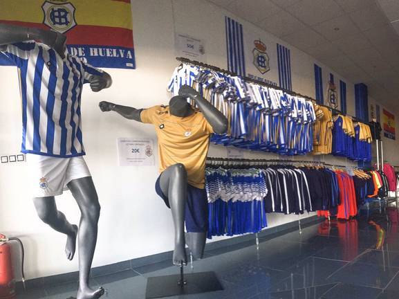 Los aficionados que deseen adquirir material deportivo o 'merchandising' del Recreativo de Huelva se han quedado sin más posibilidad que visitar la tienda oficial del club, situada en los bajos del Nuevo Colombino.