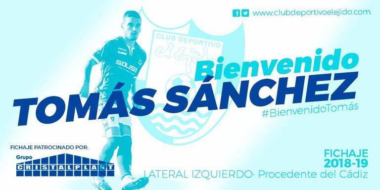 TOMAS SÁNCHEZ (Algeciras, 20 noviembre de 1993): Lateral izquierdo de 24 años que ya suma 150 partidos y 13 goles en Segunda División B tras jugar en el Cádiz, Granada B y Toledo. Estuvo en la órbita del Recreativo en el pasado mercado invernal. Ficha por dos temporadas.