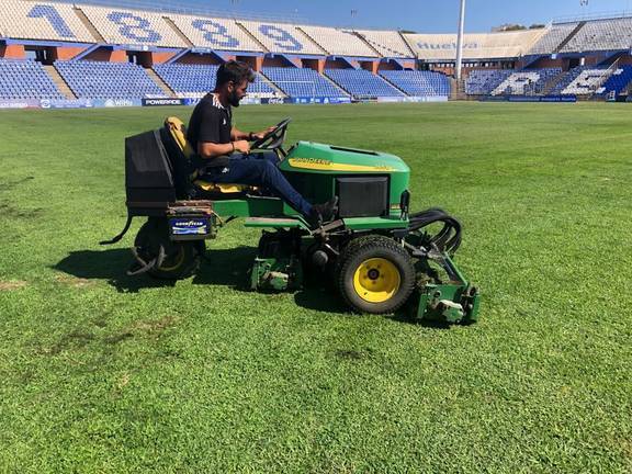 Los operarios del Recreativo de Huelva han trabajado duro estos días, para que el estadio luzca el mejor aspecto posible. Se ha priorizado el césped, pero también se han hecho arreglos en baños, asientos y palcos.