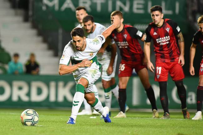 A Fidel Chaves se le venía resistiendo el gol esta temporada. Hasta ahora. El jugador onubense, que compite en Segunda División con el Elche, se reivindicó como artillero anotando tres goles en el último partido de los ilicitanos contra el Mirandés (4-2). Es el primer 'hat-trick' de la carrera del futbolista natural de Riotinto.