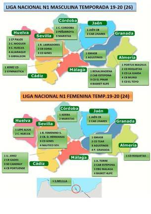 En hombres, repiten presencia el PMD Aljaraque, Ciudad de Huelva, PMD Gibraléon, Ciudad de Moguer y Ciudad de Palos, este último tras recuperar la categoría en los despachos. Precisamente, no ha logrado subir el CB Beas, tras lograrlo deportivamente.