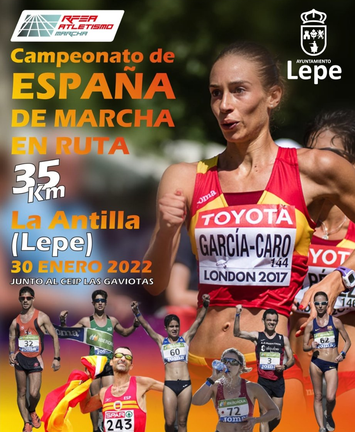 El próximo domingo, la localidad lepera de La Antilla será escenario del XCI Campeonato de España en Ruta de 35 kilómetros marcha para las categorías absoluta a sub-16. Y como no podía ser de otro modo, Laura García Caro se ha convertido en la imagen promocional del Nacional.