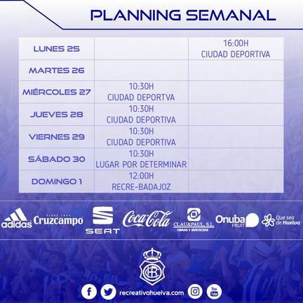 Pese a la crisis, el técnico recreativista ha planificado la semana con normalidad, dedicando las cuatro sesiones habituales a la preparación del encuentro. Algo que ha molestado a algunos aficionados. Sea como fuere, el Recre se ejercitará hoy, mañana y el viernes en la Ciudad Deportiva, a partir de las 10.30 horas. El entreno del sábado tendrá el mismo horario, aunque aún no se sabe dónde se realizará.