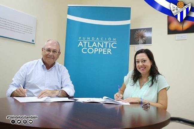 La presidenta del Sporting Club de Huelva, Manuela Romero, y el director de la Fundación Atlantic Copper, Antonio de la Vega, han suscrito un convenio de colaboración por el cual la cantera sportinguista ofrecerá un máximo de 15 becas para niñas en riesgo de exclusión social, con el objetivo de evitar que ninguna canterana deje de practicar su deporte favorito por este motivo.