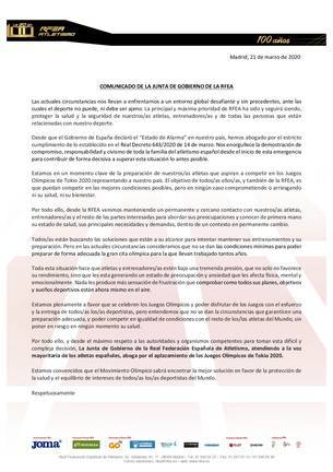 El atletismo de Huelva también pide el aplazamiento de los Juegos Olímpicos de Tokio hasta que no se resuelva la crisis sanitaria originada por la pandemia del coronavirus. Lo han hecho a través del órgano que representa a todos los atletas del país, la Real Federación Española de Atletismo, que ha emitido el siguiente comunicado: