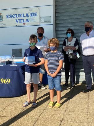 Una vez en tierra, se procedió a la entrega de trofeos, respetando el protocolo para la contención del coronavirus. La ceremonia estuvo presidida por José Miguel Vázquez García, presidente del RCMH, y a la misma asistieron familiares del desaparecido 'Boby', uno de los hombres que más hizo por la vela y el deporte onubense.
