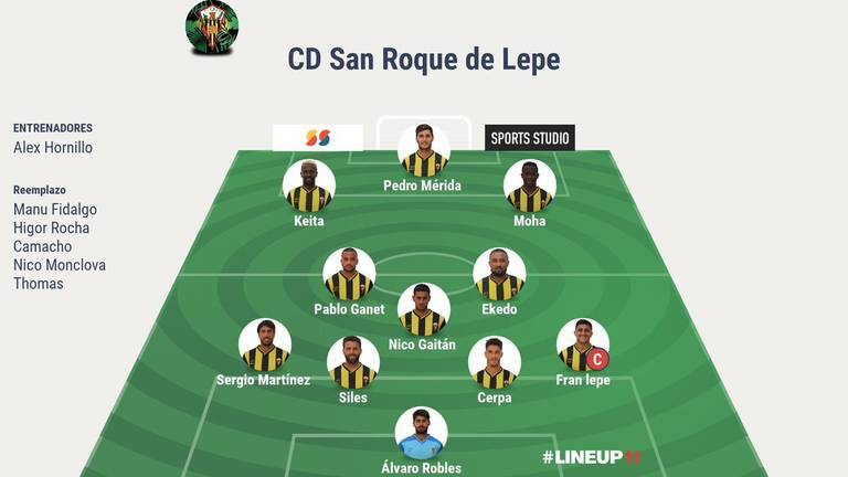 SAN ROQUE DE LEPE: Álvaro Robles; Fran Lepe (Camacho, min.66), Cerpa, Siles, Sergi Martínez; Nico Gaitán (Higor Rocha, min.52), Dani Ekedo; Moha (Thomas, min.45), Keita, Pablo Ganet; y Pedro Mérida.