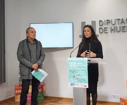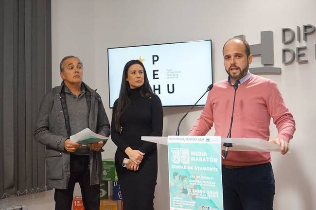 Puesta de largo de la XXXV Media Maratón 'Ciudad de Ayamonte', que se celebrará en la localidad costera el próximo domingo. Hoy ha tenido lugar la presentación oficial, en un acto que contó con la participación de Bella Canales, diputada territorial de la Costa Occidental; José Antonio Fernández Susino, gerente del Patronato Municipal de Deportes; y Javier López, teniente de alcalde responsable del Área de Deportes.