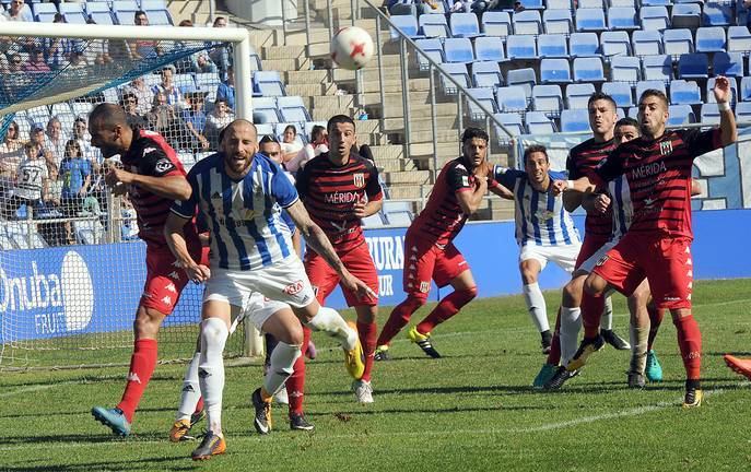 Estimulados por un Nuevo Colombino rabiosamente optimista, los albiazules no tardaron en llevar peligro sobre los dominios de Felipe Ramos. El meta del Mérida tuvo que intervenir a remate de Gorka Santamaría y poco después suspiraba de alivio al ver como el balón impulsado por Boris salía fuera. En ambas ocasiones, Núñez ejerció de asistente.