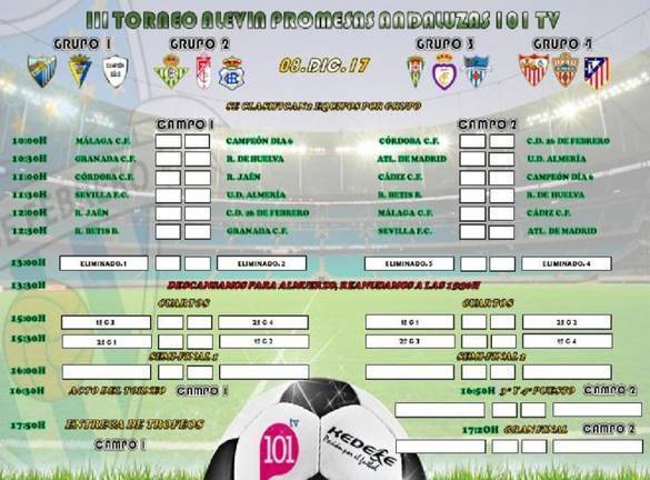 El Recre Alevín ha sido encuadrado en el Grupo 2 junto al Betis y el Granada, y disputará sus encuentros en el Estadio Municipal La Virreina, en la zona norte de la ciudad de Málaga. También participan clubes del nivel del Atlético de Madrid, Sevilla, Málaga, Cádiz, Almería o Córdoba.