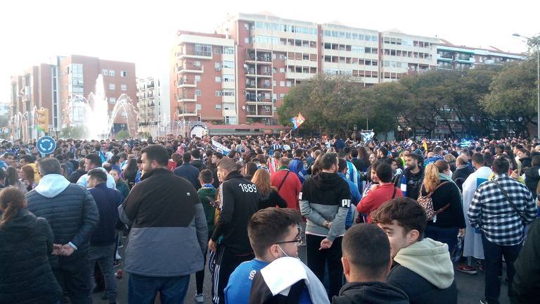 El Recreativo de Huelva ya es matemáticamente equipo de la Segunda RFEF gracias al traspié del Utrera en Pozoblanco (3-1). Centenares de aficionados albiazules se agolpan en La Fuente de los Triunfos.
