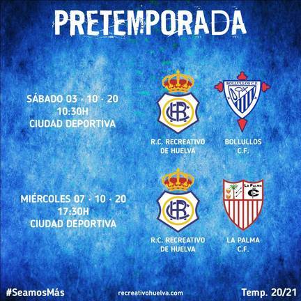 La pretemporada del Recreativo de Huelva gana dos nuevas citas. El Decano ha anunciado en el día de hoy que jugará dos amistosos más frente al Bollullos CF y La Palma CF. No obstante, ambos encuentros tendrán la consideración de 'partidos de entrenamiento', por lo que se disputarán a puerta cerrada en la Ciudad Deportiva.