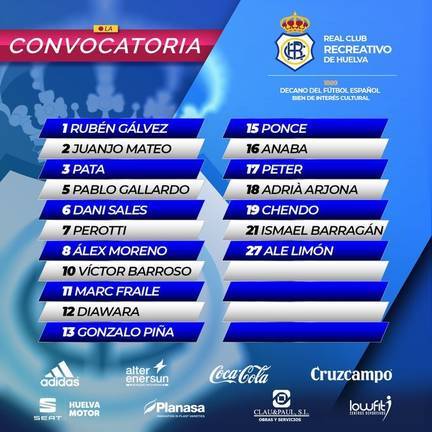 La otra novedad en la citación es Ale Limón. Por el contrario, se caen Manu Galán, por sanción, y Rubén Serrano, por decisión técnica. Además, causan baja Enric Martínez y Juan Delgado, por lesión; y Cristian Terán, por enfermedad. Tras el empate en Córdoba, el Recre tratará de aprovechar la visita al colista para volver a la senda del triunfo y seguir aspirando a cerrar la primera vuelta sin perder un solo partido.