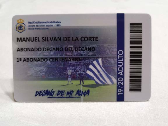 Un pequeño detalle de los que hace grande a un club. El Recreativo de Huelva, a través de su presidente Manolo Zambrano, ha entregado un carnet especial como 'Decano del Decano', a Manuel Silván De la Corte, quien hoy ha cumplido un centenar de años. Es el recreativista vivo de más edad.