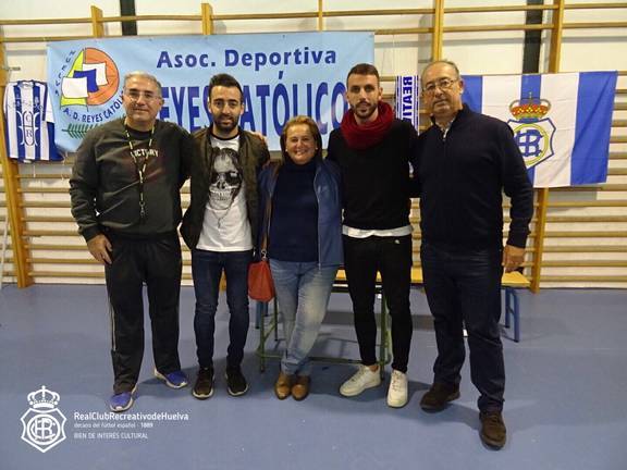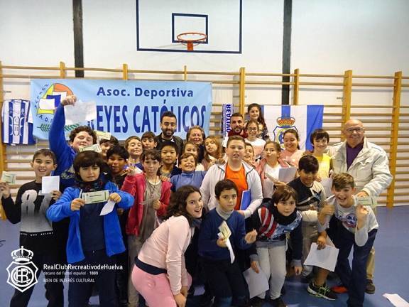 En esta ocasión miembros del colectivo peñista, junto con los jugadores Mario Marín y Rubén Gálvez, han visitado el Colegio Reyes Católicos de la capital onubense para disfrute de sus escolares.