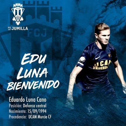 EDU LUNA (Murcia, 15/09/1994). Central de 21 años con experiencia en la categoría de bronce (25 partidos), que llega desde el UCAM Murcia. Formado en la cantera del club universitario, también ha militado en el Águilas, Albacete B y Arenas. Destaca por su juego aéreo y su posicionamiento en el terreno de juego. Ocupa plaza de sub-23.