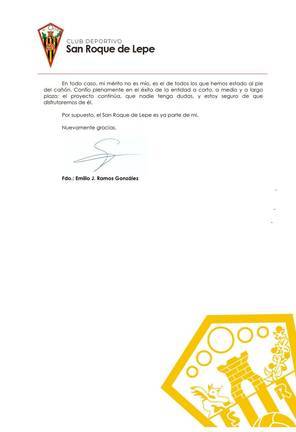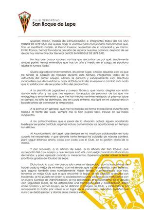 Relevo en la cúpula directiva del San Roque de Lepe. Emilio Ramos abandona el club, tras cesar en sus funciones como director general, cargo que asume a partir de ahora Manolo Santana, quien ejercía hasta el momento de director deportivo. El relevo ha sido motivado por diferencia de criterios con los inversores suecos que poseen la mayoría accionarial de la entidad.