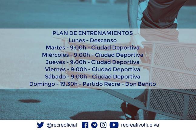 Porque según el 'planning' semanal publicado por el club, se acabaron las dobles sesiones diarias que han caracterizado a la pretemporada y martirizado a los albiazules. Es más, el técnico del Recre no sólo ha dado hoy descanso a sus hombres, también ha programado un único entrenamiento por día, de martes a sábado, antes de recibir el domingo al Don Benito.